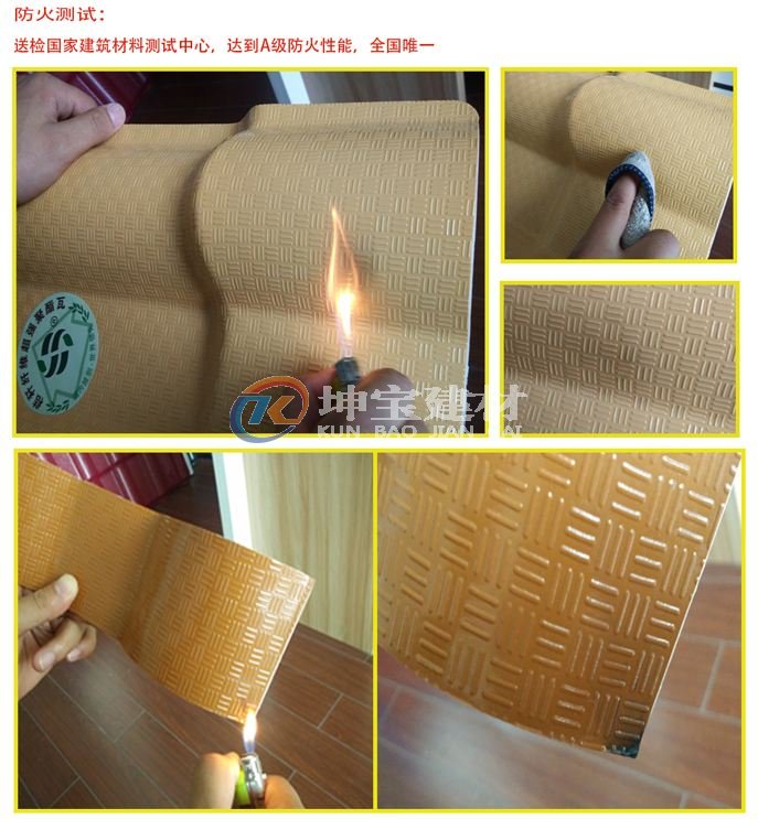 秸稈的高分子密度能使產(chǎn)品具有高強度的韌性,保證產(chǎn)品的耐用性、防風、抗震不變形,而且它的天然植物纖維可降解,使產(chǎn)品具有耐酸耐堿的特性,自然使用壽命可達30年以上,顏色永不退色。經(jīng)中國上海物理研究所檢測表明,秸稈纖維的抗紫外線功能已超過納米材料,而且它的吸音性能遠遠超越于傳統(tǒng)的建筑吸音材料,它的防火能力及密度真正地將秸稈纖維系列瓦面的防火能力提高20%至50%。導熱系數(shù)非常小,保溫效果好,燃燒性能達到A1級防火。也是全國唯一能達到A級防火的聚酯瓦,也是絕佳的傳統(tǒng)屋面瓦的替代產(chǎn)品。同時符合國家低碳環(huán)保重點推廣的理念,是真正的“瓦中之王”新型屋面瓦產(chǎn)品。